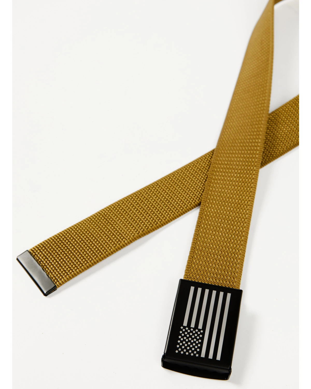 - Matte white American flag rectangular buckle